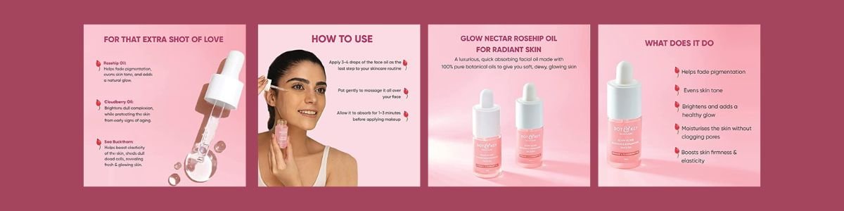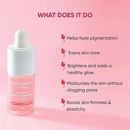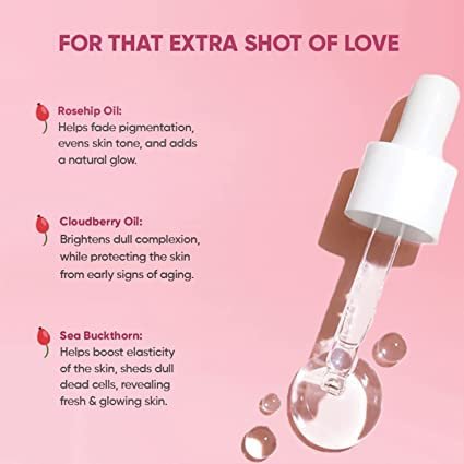 Fabricado con la bondad del aceite de rosa mosqueta, penetra profundamente en la piel y ayuda a deshacerse de la pigmentación y el tono desigual de la piel. El aceite de mora ilumina y energiza la tez opaca desde dentro. El aceite de jojoba nutre e hidrata profundamente múltiples capas de la piel sin congestión y bloqueo de los poros. Ilumina y añade un hermoso brillo saludable a la piel. Aumenta la producción de colágeno y mejora la firmeza y elasticidad de la piel.